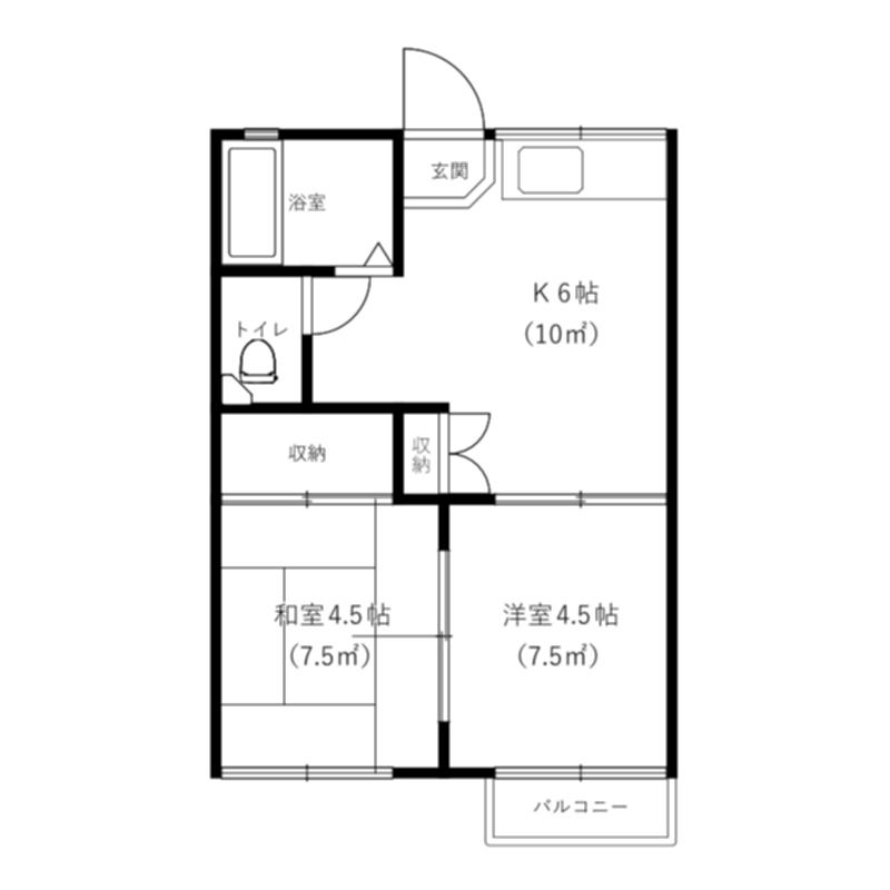 | 間取り | 2K(K6 洋4.5 和4.5) |