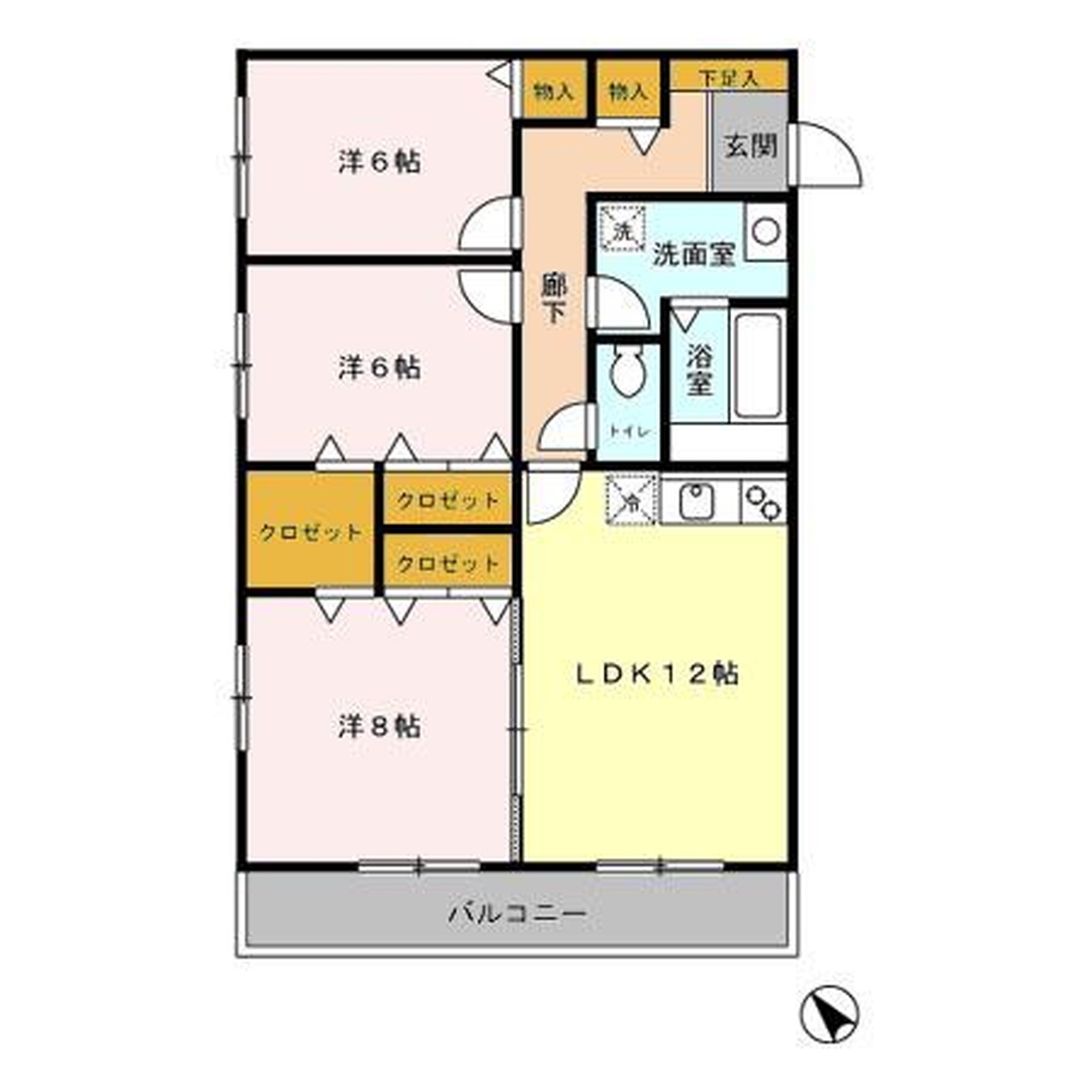 | 間取り | 3LDK(LDK12 洋8 洋6 洋6) |