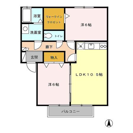 | 間取り | 2LDK(LDK10.5 洋6 洋6) |