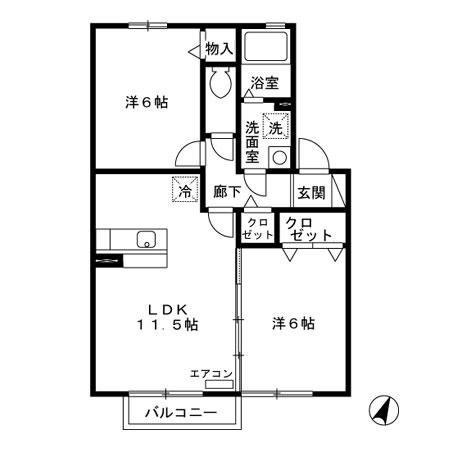 | 間取り | 2LDK(LDK11.5 洋6 洋6) |