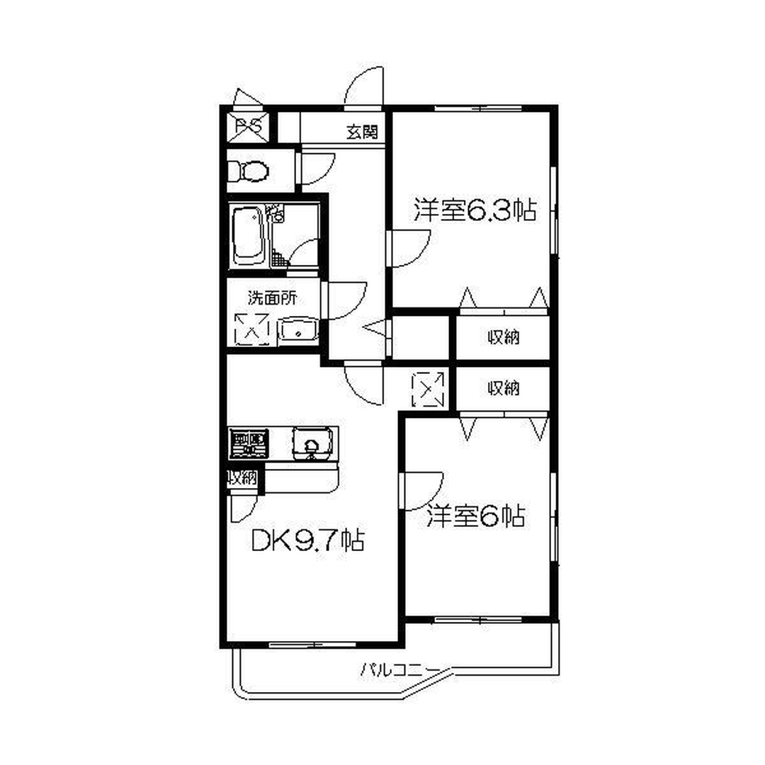 | 間取り | 2DK(DK9.7 洋6 洋6.3) |