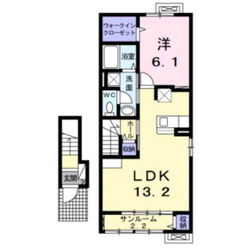 | 間取り | 1LDK(LDK13.2 洋6.1) |