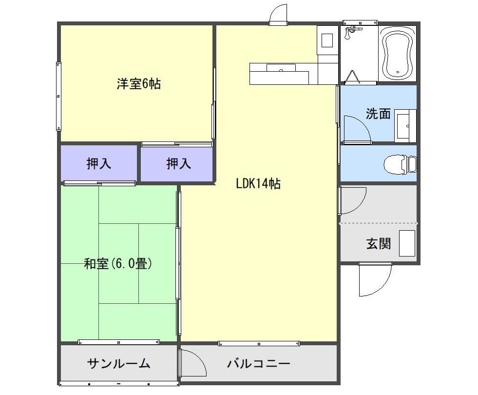 | 間取り | 2LDK(LDK14 洋6 和6) |