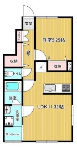 | 間取り | 1LDK(LDK11.3 洋5.3) |