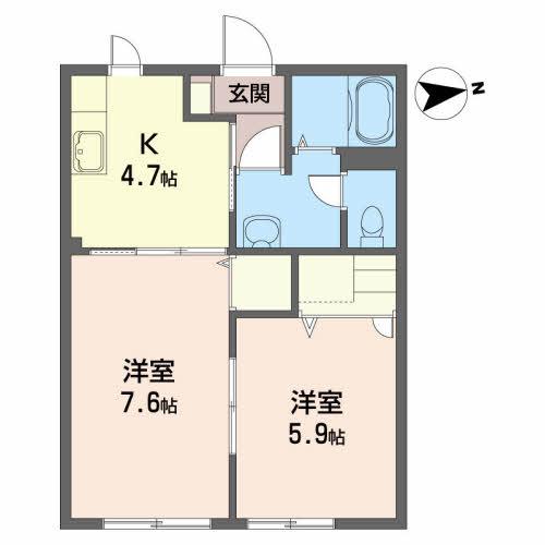 | 間取り | 2K(K4.7 洋7.6 洋5.9) |
