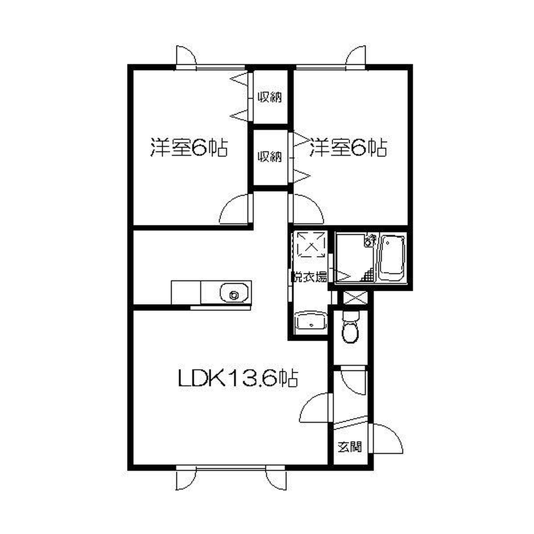 | 間取り | 2LDK(LDK13.6 洋6 洋6) |
