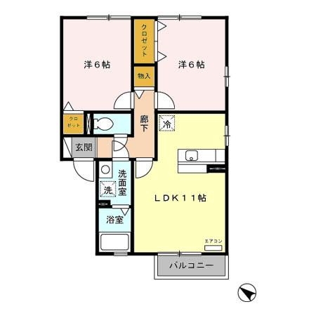 間取り 2LDK(LDK11 洋6 洋6)