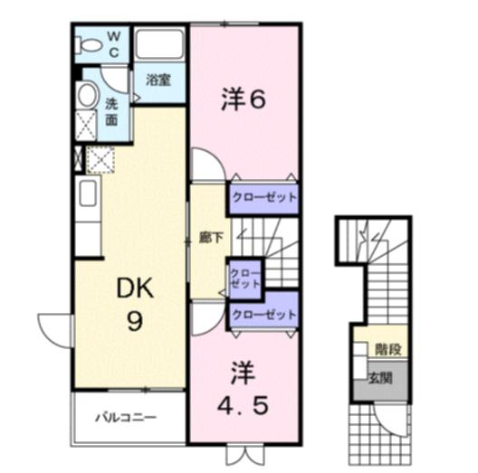 | 間取り | 2DK(DK9 洋6 洋4.5) |
