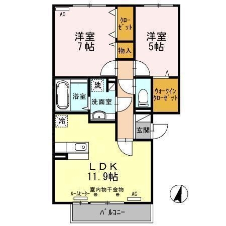 | 間取り | 2LDK(LDK11.9 洋7 洋5) |