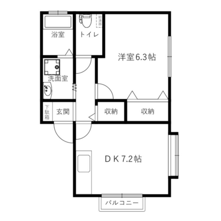 間取り 1DK(DK7.2 洋6.3)
