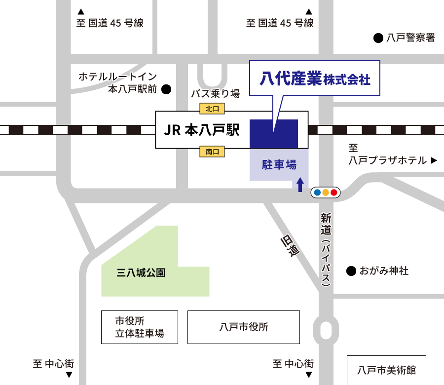 八代産業株式会社はJR八戸線 本八戸駅構内(南口側)にて営業しております。