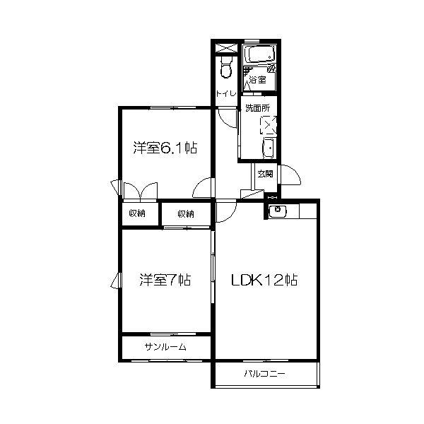 間取り 2LDK(LDK12 洋6.1 洋7)