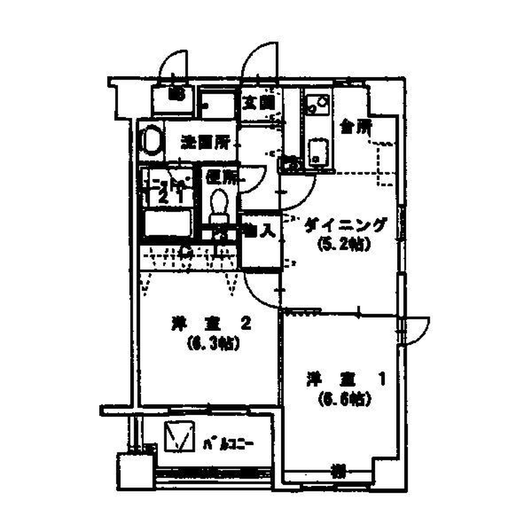 | 間取り | 2DK(DK5.2 洋6.6 洋6.3) |