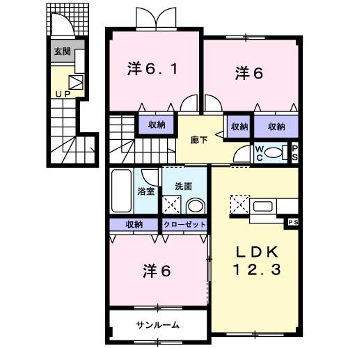 間取り 3LDK(LDK12.3 洋6 洋6 洋6.1)