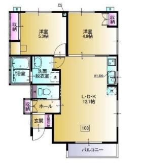 間取り 2LDK(LDK14.7 洋4.9 洋5.3)