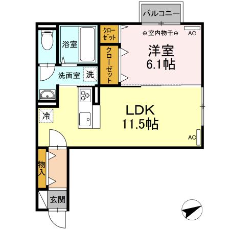 | 間取り | 1LDK(LDK11.5 洋6.1) |