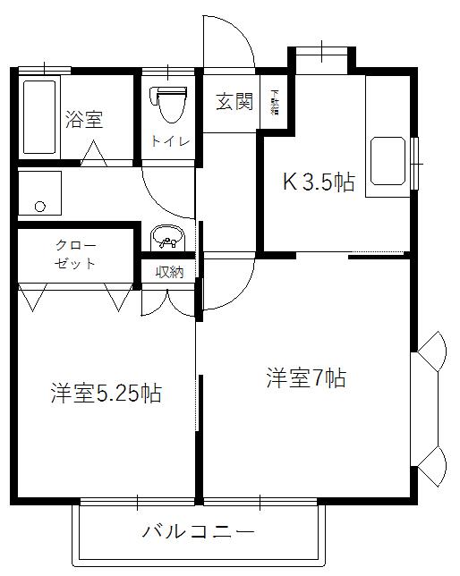 | 間取り | 2K(K3.5 洋7 洋5.25) |
