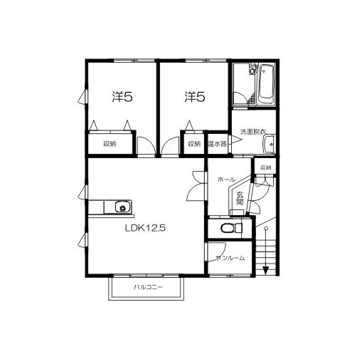 間取り 2LDK(LDK12.5 洋5 洋5)