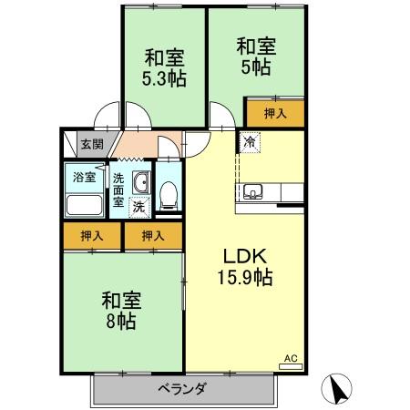 | 間取り | 3LDK(LDK15.9 和8 和5.3 和5) |