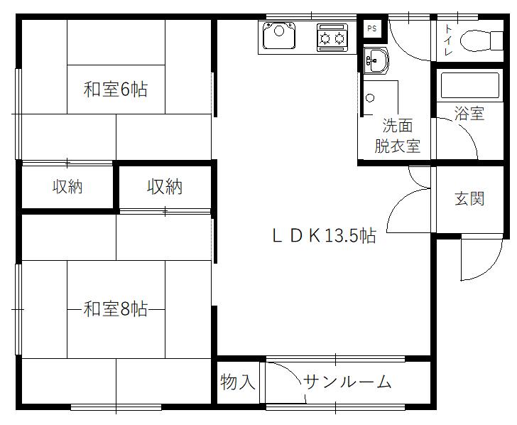 間取り 2LDK(LDK13.5 和6 和8)