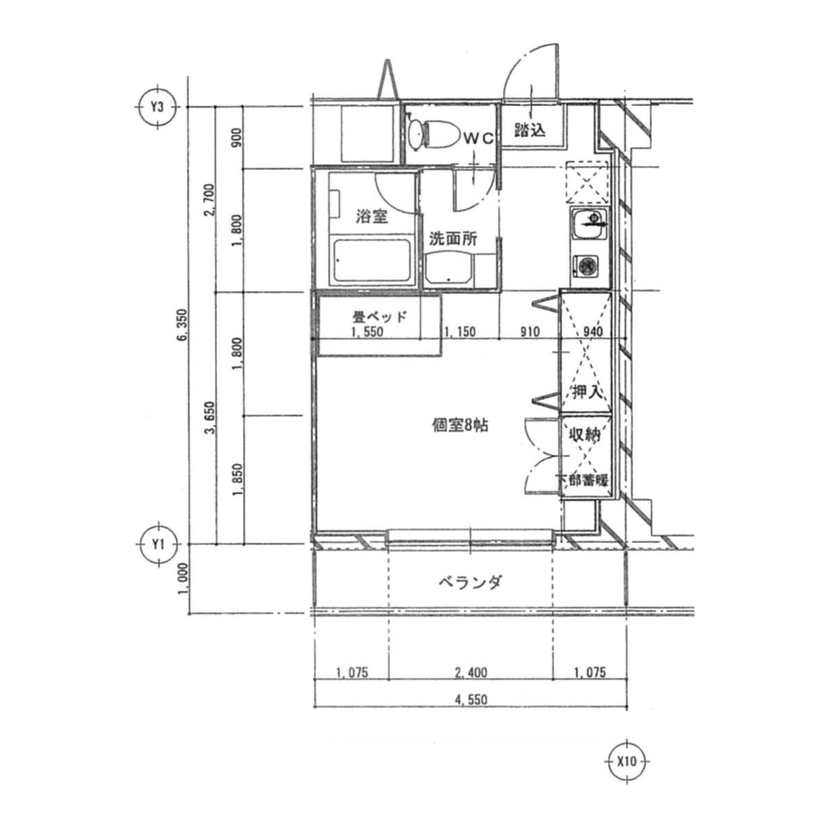 間取り 1K(K2 洋8)