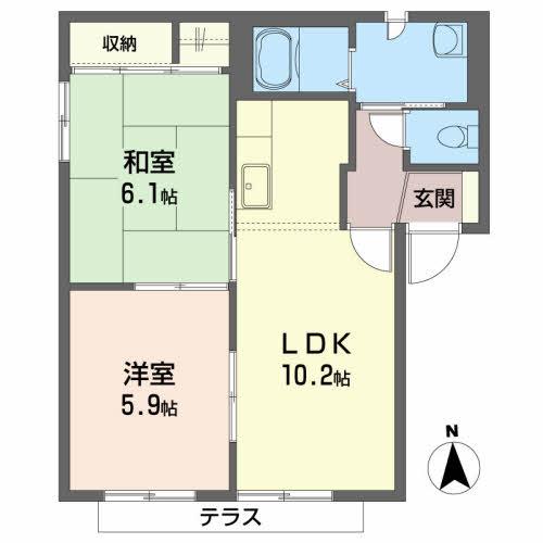 | 間取り | 2LDK(LDK10.2 洋5.9 和6.1) |