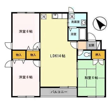 | 間取り | 3LDK(LDK14 洋6 洋6 和6) |