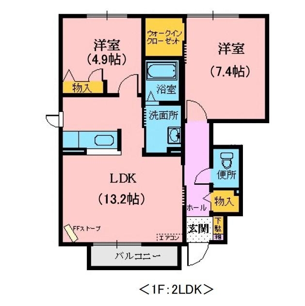 | 間取り | 2LDK(LDK13.2 洋7.4 洋4.9) |