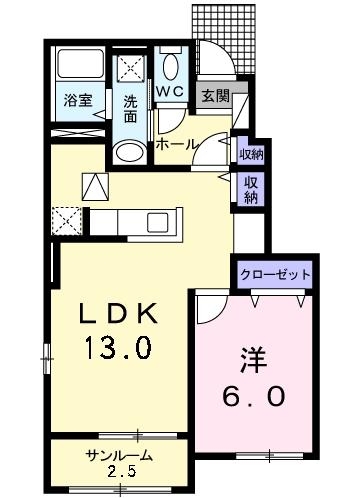 | 間取り | 1LDK(LDK13.8 洋6) |