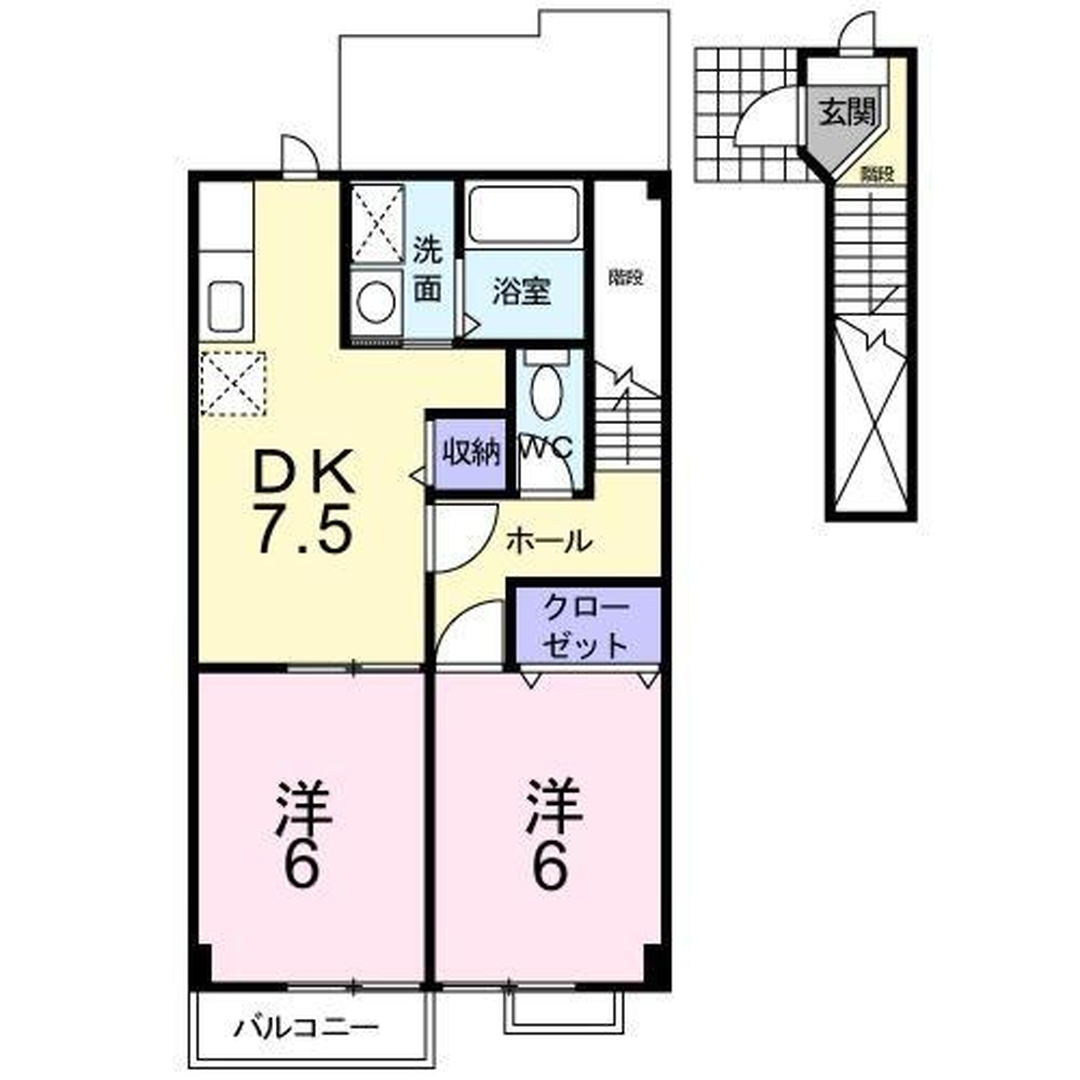 | 間取り | 2DK(DK7.5 洋6 洋6) |