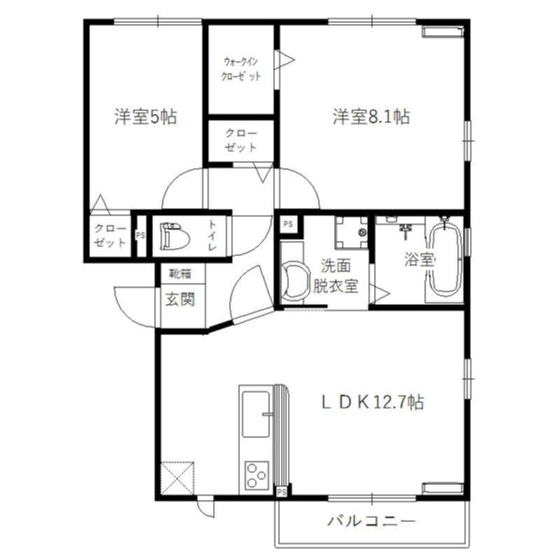 | 間取り | 2LDK(LDK12.7 洋8.1 洋5) |