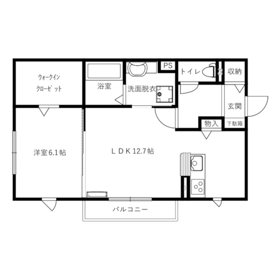 | 間取り | 1LDK(LDK12.7 洋6.1) |