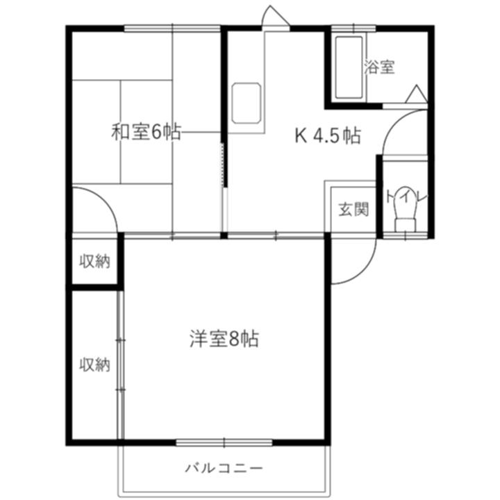 | 間取り | 2K(K4.5 洋8 和6) |