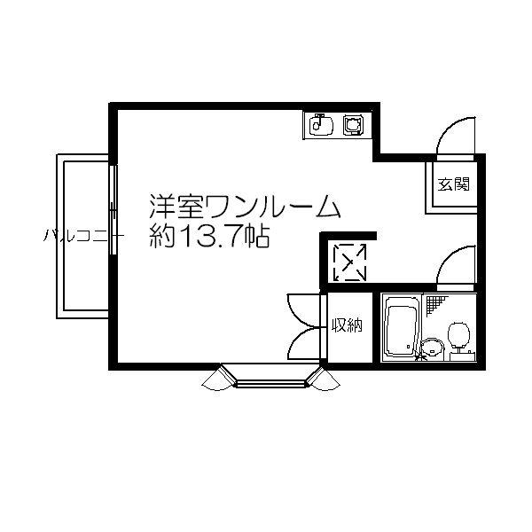 | 間取り | 1R(洋13.7) |