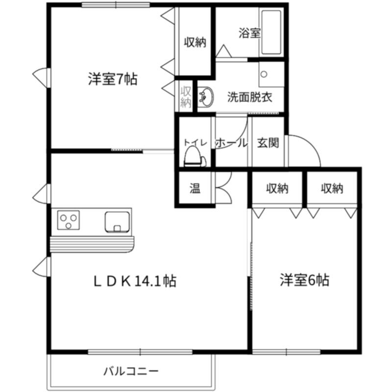 | 間取り | 2LDK(LDK14.1 洋7 洋6) |