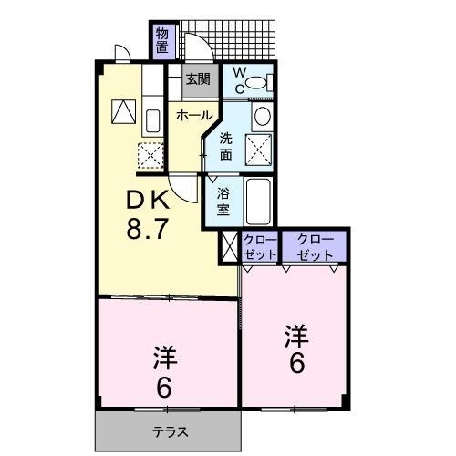 | 間取り | 2DK(DK8.7 洋6 洋6) |