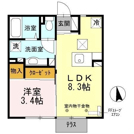 | 間取り | 1LDK(LDK8.3 洋3.4) |