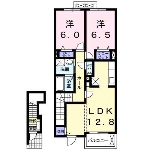 | 間取り | 2LDK(LDK12.8 洋6.5 洋6) |