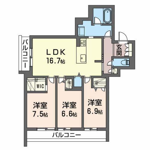 間取り 3LDK(LDK16.7 洋7.5 洋6.6 洋6.9)