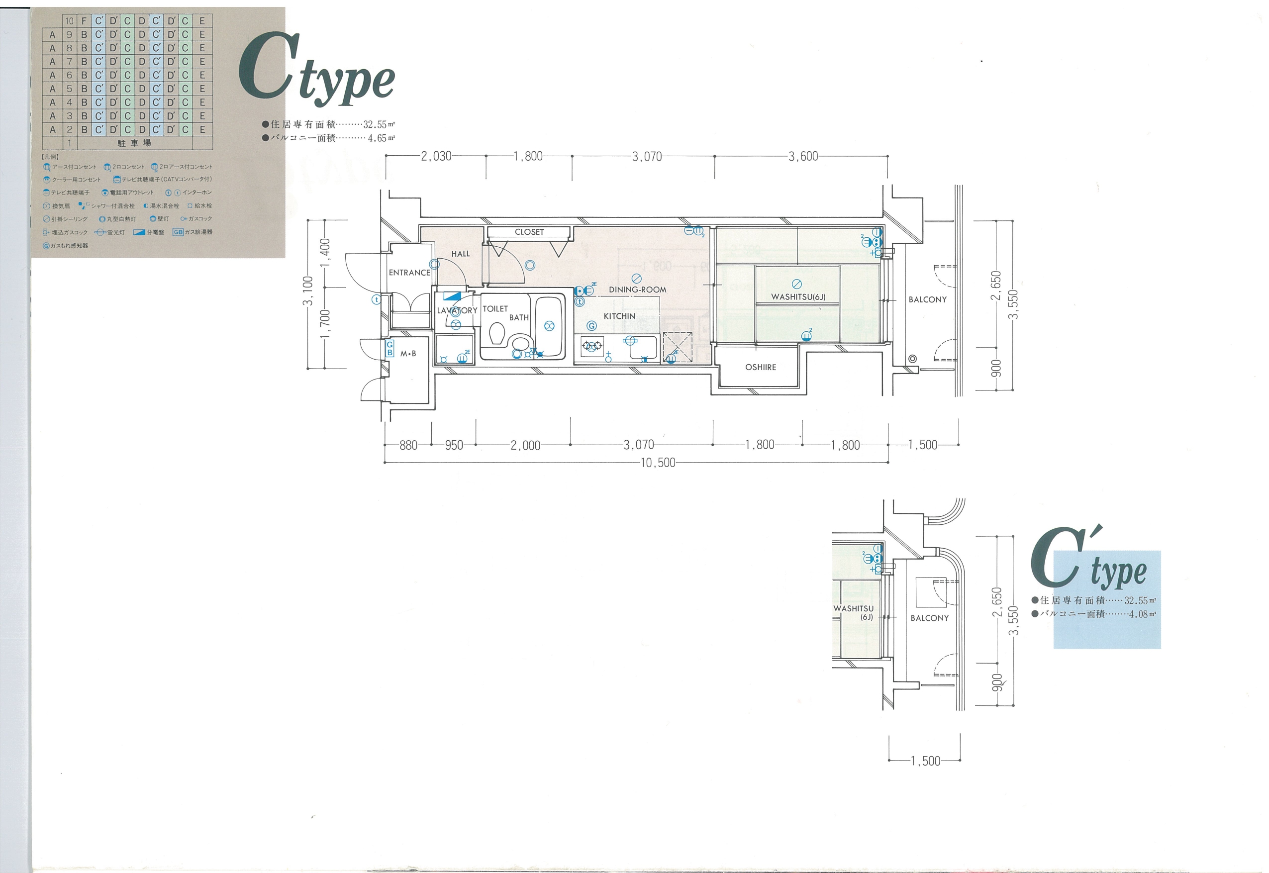 | 建物構造 | 鉄骨鉄筋コンクリート造 10階 | 建物面積 | 32.55㎡(9.84坪)バルコニー4.65㎡(1.40坪) |